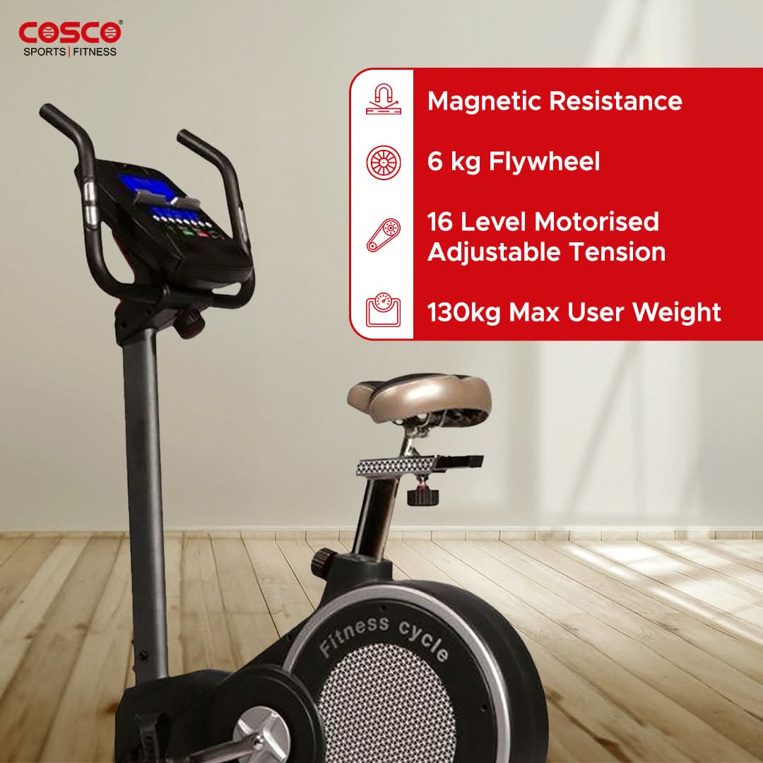 What’s more? It also comes with a 6kg flywheel. It has a 130kg user weight capacity and 16 Level Motorised Adjustable Tension to provide fun and challenging workouts. It also has a stunning LCD display indicating Speed, Calories, Pulse and Distance etc. All this and more from a brand with 40 years of Consumer trust.