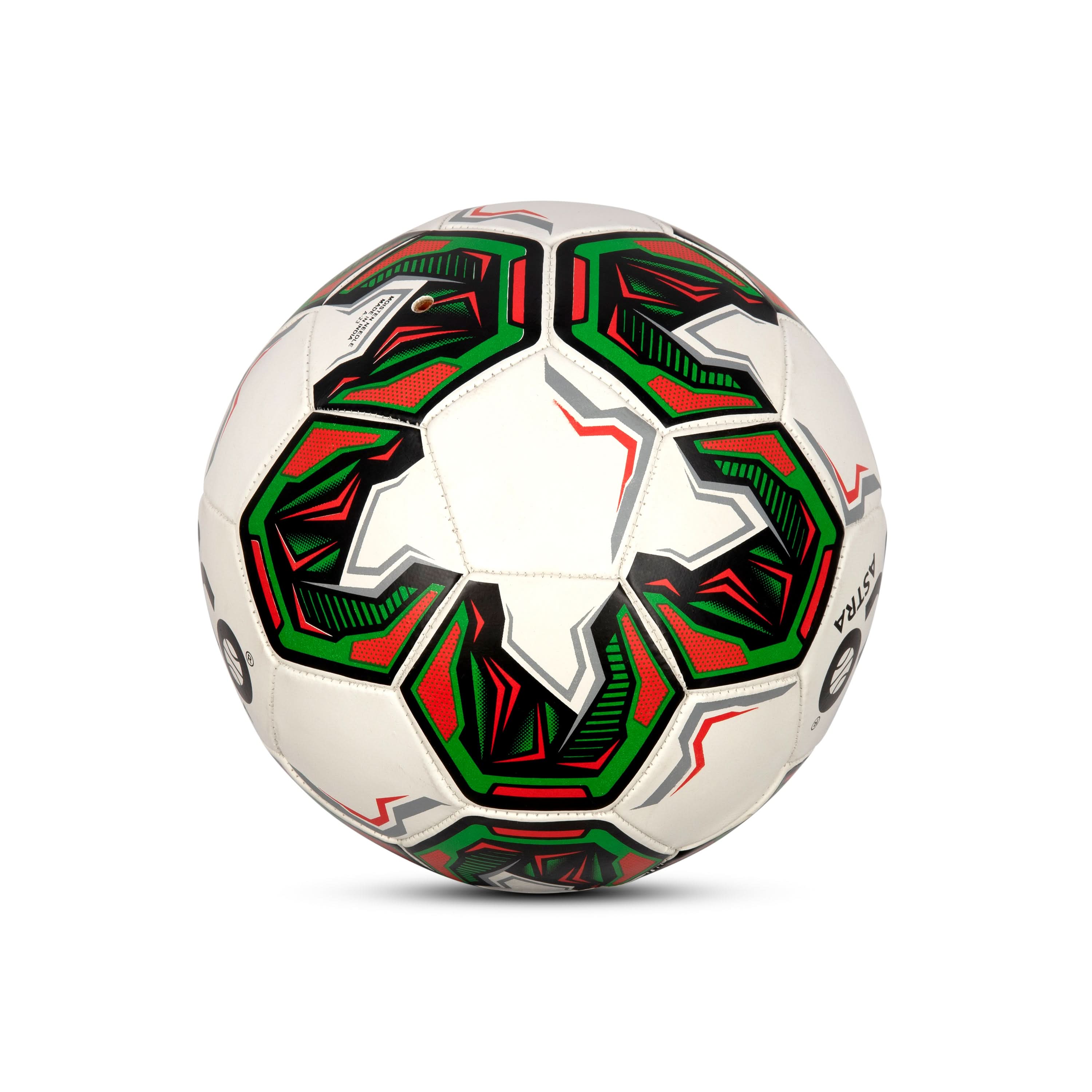 Made in India. This ball consists of a top layer of high quality synthetic rubber for enhanced durability. The core consists of a latex bladder which helps the ball have a soft feel and ensures accurate flight in passes and shots. All 32 panels are hand sewn by artisanal craftsmen with a strong focus on quality. Suitable to play on all surfaces.