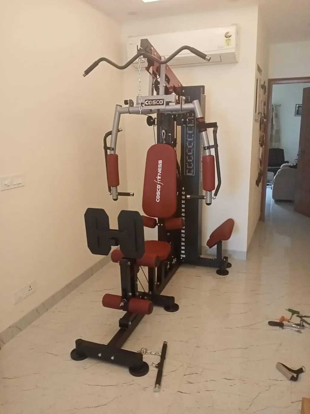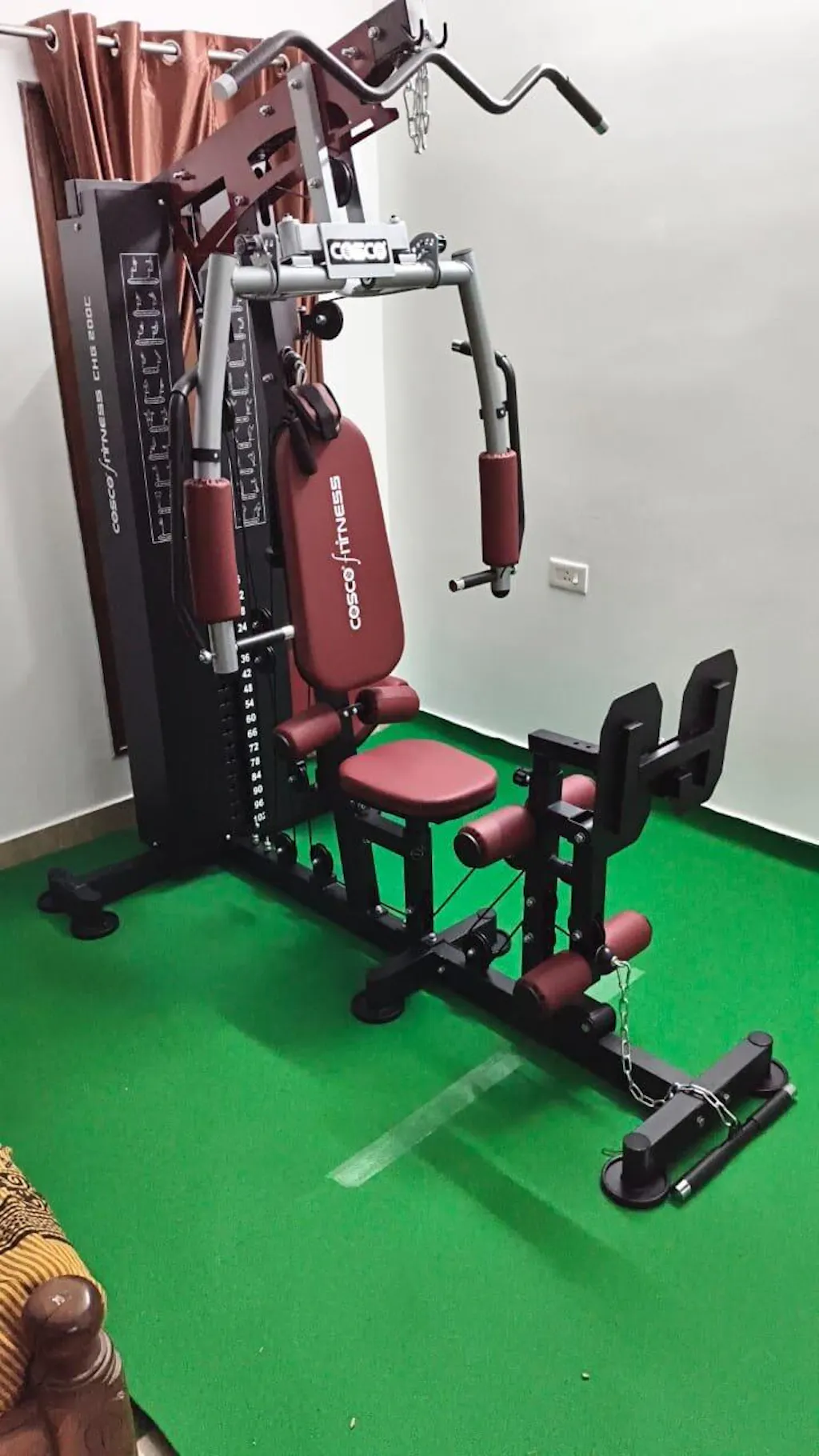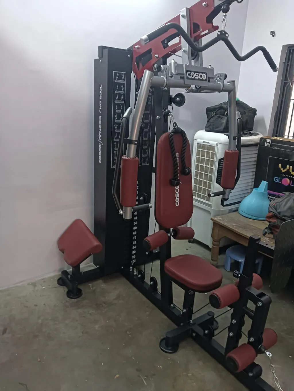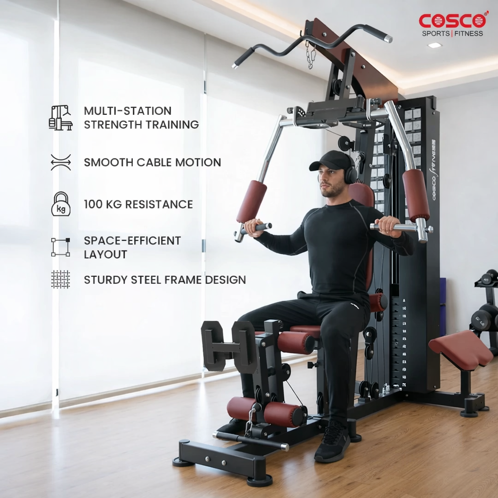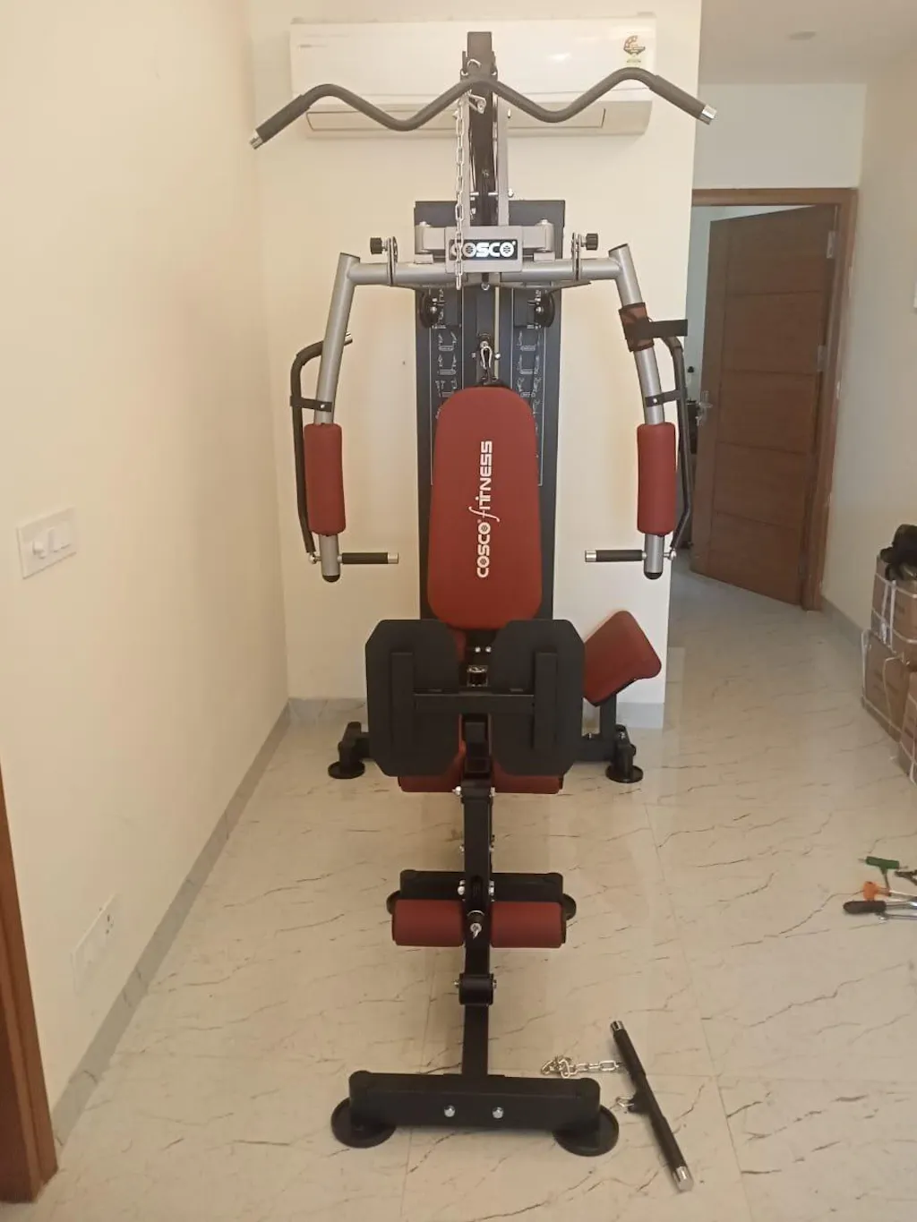 The CHG 200C Home Gym is a high utility product. It is constructed with heavy duty material and strong padding for utmost safety for your joints and body. It comes with a 220 lbs weight stack, with FULL Cover.The muscle groups possible to target include legs, chest, biceps, triceps, shoulder and back. It has an adjustable seat making it super easy to workout. It can take user weight up to 150kgs. Net Weight 178 Kgs.