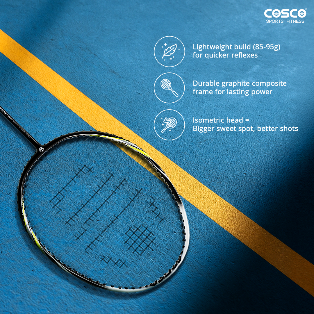 This racket has an ISO head and has a frame made from Graphite which makes it really light. It further has a shaft made from steel to provide stability. It is Best Suited for matches. It Comes with a full cover.