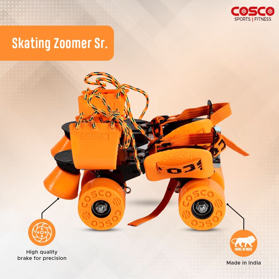 Made in India. It has synthetic Wheels, which makes it durable and suitable on all surfaces. The size is adjustable .