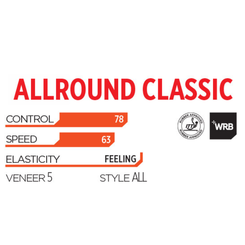 Lightweight 5-ply blade with great feeling and control. One of the most sold allround blades through all times. Suitable for experienced players as well as beginners.
