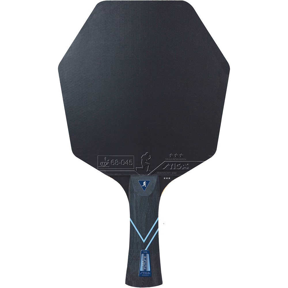 3-star table tennis bat in STIGA's unique Cybershape design – a brand-new, patent-pending, pattern-protected shape optimized for maximum hitting surface. Developed and designed together with STIGA player and deputy world champion Truls Möregårdh. Stable, concave shaft with an offensive blade made from 5 layers of wood. ITTF-approved Truls Möregårdh rubbers, based on DNA Platinum's unique playing characteristics and adapted for players in development. Optimized, larger sweet spot for a better balance than in traditionally shaped bats. Cybershape Future's unique shape allows easier customization of your bat angle to achieve the desired spin when serving. A bat for those who want more speed and feeling. ITTF-approved 3-star rubber.