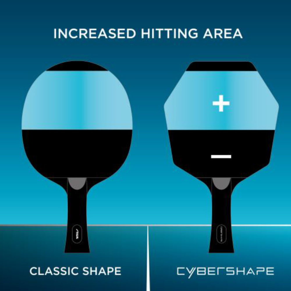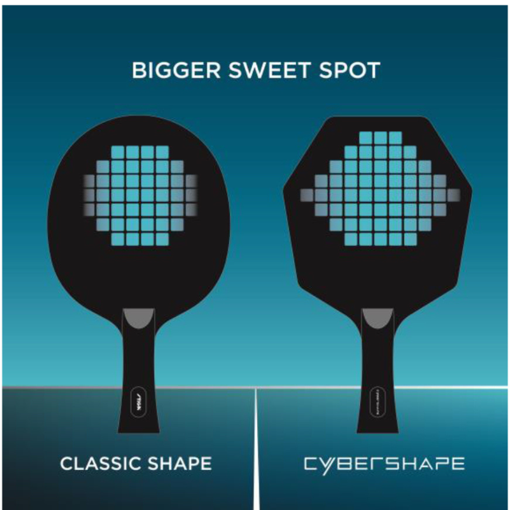 The revolutionary shape that took Truls Möregårdh to the 2021 World Cup final. Cybershape Wood is a factory-lacquered, offensive blade that is made up of five exclusive wooden layers and developed to work optimally with a wide range of STIGA's table tennis rubbers. An offensive table tennis blade with a revolutionary, patent pending and design-protected shape that provides an optimised hitting area. The symbiosis of exclusive materials, the unique Cybershape design, result in a flexible blade that fits several different play styles. Developed together with STIGA professional players to work optimally with a wide range of STIGA's table tennis rubbers. According to measurements from tests carried out in collaboration with KTH, Cybershape has a larger sweet spot placed higher up on the blade than a standard shape which gives more power in your strokes without losing control of the ball. Handles are made of the top-quality Italian wood and have a surface roughness that ensures an optimal gripping surface without the handle feeling slippery.