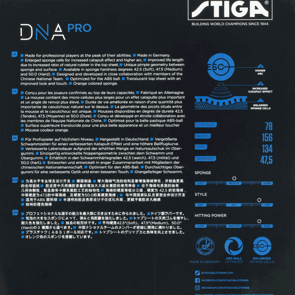 A fast and powerful rubber for offensive play. ESC technology offers a higher arc in topspin rallies. The combination of natural and synthetic rubber increases the durability of the rubber. Orange-colored sponge with transparent surface rubber optimized for the ABS ball.