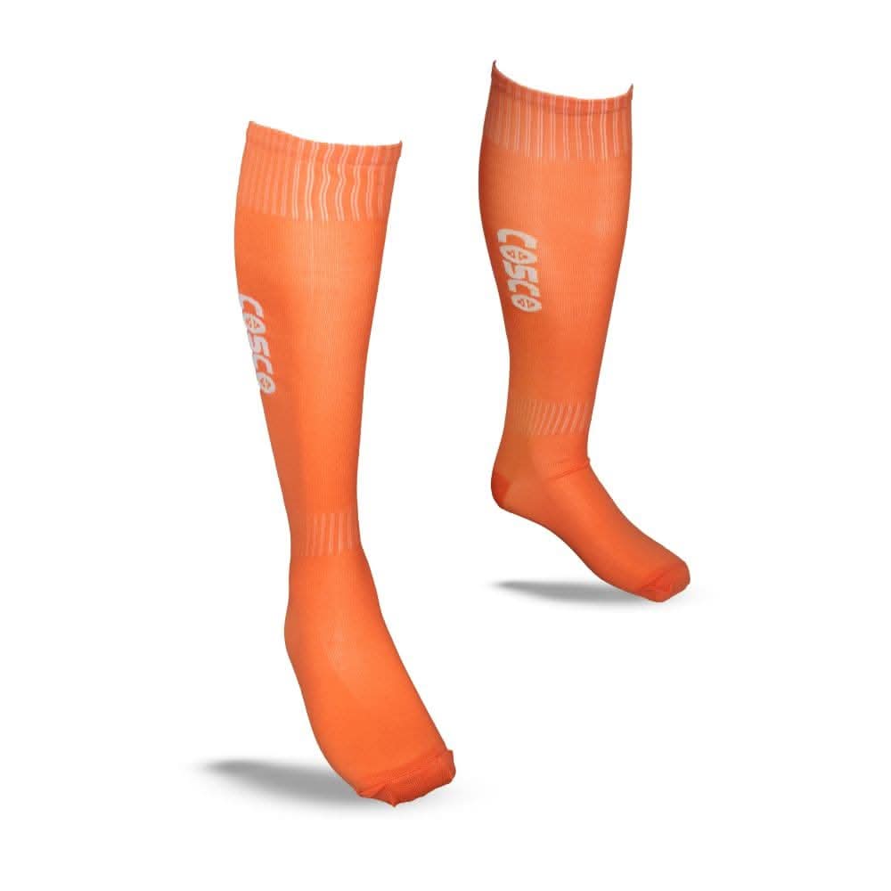 Alfa Orange- stocking are perfect for the professional matches and training sessions. These stockings keeps shin pads in place, don't let them drop down. You will not have to constantly worry about adjusting your shin pads during the game. Dynamic elastic grip keeps shin pads in place, even during high intensity games. Keep away the moisture and keeps the feet cool and facilitates airflow Engineered padded foot-bed reduces muscle fatigue. It also helps in pain relief in calf, thigh and Achilles areas and imparts optimum pressure. Available in diff. Sizes: S|M|L