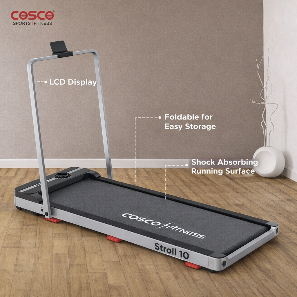 COSCO is the only Indian brand in the world’s top treadmill brands. The Cosco STROLL 10 Walk Pad is a compact and convenient treadmill designed for comfortable home workouts. Powered by a 1.0 HP DC motor with a speed range of 1–10 km/h, it is perfect for walking and light jogging. Its foldable horizontal design makes it easy to store under the bed, saving space in your home.